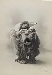 The animals in the play, including the Cowardly Lion, did not speak, following the pantomime tradition. Although the lion costume was realistic, far more so than Bert Lahr's in the MGM film, his main purpose was a bit of comic relief and scaring off the villains on occasion. His quest for courage is completely omitted, much as the other characters' quests are deemphasized in favor of various comic routines. Ultimately, though, their desire to seek the Wizard's aid gets them caught on the wrong side of the revolution, jailed and ultimately scheduled for execution. In a deus ex machina, another tornado arrives to sweep Dorothy home from the chopping block.[17]