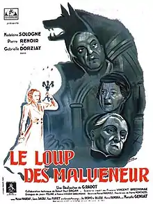 The Wolf of the Malveneurs (French: Le loup des Malveneur) is a 1943 French mystery horror film directed by Guillaume Radot and starring Madeleine Sologne, Pierre Renoir and Gabrielle Dorziat.[1] It was shot at the Cité Elgé studios in Paris with location shooting at the Château d'Anjony in Tournemire. The film's sets were designed by the art director Marcel Magniez. It is Gothic in style with use of chiaroscuro lighting. It was part of a group of films produced in German-occupied France that used fantasy or historical costume settings to subtly express dissent.[2]