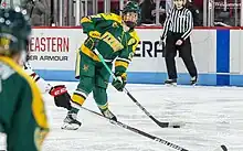 During the 2021–22 season in her senior year, she recorded 25 goals and 21 assists in 29 games. She set the Vermont single season record for points (46) and goals (25).[1] On 9 October 2022, she recorded two goals and became the program's all-time career leader in points with 106.[2] She was named the Hockey East Player of the Month and the HCA National Player of the Month for the month of January. She led the NCAA with nine goals and 17 points in nine games during the month. She recorded at least one point in all nine games and had six multiple point games.[3][4] Following an outstanding season she was named a unanimous First Team All Hockey East selection, Hockey East Scoring Champion, Hockey East Player of the Year, and PNC Bank Three Stars Award winner.[5] She was also named a CCM/AHCA Hockey First Team All-American and a top-ten finalist for the Patty Kazmaier Award, becoming the first player in program history to be named a finalist for the award.[6][7]