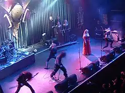Therion (formerly Blitzkrieg) is a Swedish symphonic metal band founded by Christofer Johnsson in 1987. Its name was inspired by the Celtic Frost album To Mega Therion. "To Mega Therion" is Greek for "The Great Beast" and was a title used by occultist Aleister Crowley.[1][2] Originally a death metal band, Therion adjusted its musical style by adding orchestral elements, including choirs, classical musicians, and even a full orchestra at their concert performances. As a result, they are considered pioneers of the symphonic metal genre.