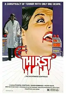 Thirst is a 1979 Australian horror film directed by Rod Hardy and starring Chantal Contouri, Max Phipps, and David Hemmings. It has been described as a blend of vampire and science fiction genres, influenced by the 1973 film Soylent Green[2] as well as drawing on the vampire folklore of Elizabeth Báthory – one of several vampire films in the 1970s to do so.[3]