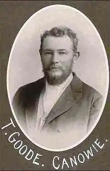- ↑ "Death of Mr. T. Goode". South Australian Register. Adelaide: National Library of Australia. 23 July 1926. p. 10. Retrieved 22 February 2013.