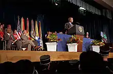 7. "President George W. Bush announces his Lessons of Liberty initiative at Thomas S. Wootton High School in Rockville, MD. The initiative is an opportunity for American students to learn more about our country and its values, as well as the people that have been called upon to defend its freedom. White House photo by Tina Hager". November 1, 2001. Retrieved November 1, 2017.