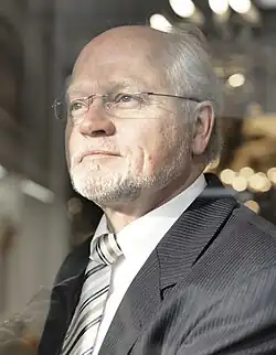 Wüppesahl was member of the Bundestag until the end of the 11th period in 1990. In 1990 he criticized the procedure of the German reunification gave no participation in the process to the population in Eastern Germany.[2] Recordings and printed material show his presence and competence.[3] Titanic Magazine dignified Wüppesahl 1991 as "the last parliamentarian".[4] Having given 113 speeches Wüppesahl became the most active member of this period and one of the most active members ever.[5][6] On the ceremonial act to the 60th anniversary of the Bundestag in 2009 Wüppesahl was introduced as the member of parliament who made copious use of the right of an independent parliamentarian to speak onto every agenda item of a sitting of the Bundestag.[7]