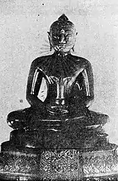King Taksin's ultimate goal was not only being king but also attaining Buddhahood,[60] which mindfulness and meditations were the way to achieve. In late 1776, King Taksin began to actively pursue esoteric Borān Kammaṭṭhāna[61] meditational practices. He seriously studied meditation methods with the monk Phra Wannarat Thongyu[61] at Wat Hong Rattanaram. King Taksin even composed his own meditation manual in 1775.[61] He sent monks to Ligor and Cambodia in search for Visuddhimagga treatise on meditation. In 1777, King Taksin declared that he had become a sotapanna the 'stream-enterer' who had entered the first of four-stage path to Buddhahood.[10] In 1778, Taksin ordered the recompliation of Traiphum[62] – Buddhist literature on cosmology. Upholding Buddhism had been considered royal duties but Taksin went beyond being Buddhist patron by taking the role of teacher and leader of the Sangha[10] and personally practising the Kammaṭṭhāna. In 1780, King Taksin commanded that the monks should perform wai gesture to pay respect to him and lay prostrate[63] before him. Taksin's new stance reversed the usual relationship between monk and king[10] and caused schism[63] in the Sangha between those who complied with the king's rhetoric and those who rejected. Sangharaja Si insisted that monks were always superior to laymen. The angered king stripped Venerable Si of his Sangharaja position and made the monk Chuen of Wat Hong, who supported Taksin's assertion, the new Sangharaja instead. Five hundred monks who refused to obey royal orders were beaten as punishment.[10][63] Si and other monks were condemned to menial works in Wat Hong, serving the new patriarch.[63] When Taksin fell from power in 1782, King Rama I restored Venerable Si to his position as Sangharaja, praising him for undeterred adherence to orthodoxy.
