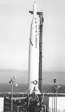 The first two flights used a solid fuel MG-18 as second stage. After than an Altair rocket stage (same as the third stage of some Vanguard launch vehicles) was used, equipped by Boeing with 3-axis control.[5][1]