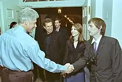 Actor Spike Jonze greets Bill Clinton at screening in the White House.