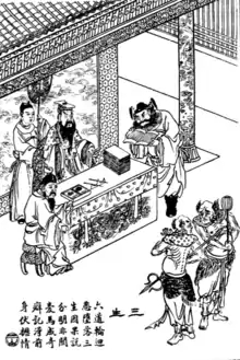 Yama reviews Liu's record; 19th-century illustration from Xiangzhu liaozhai zhiyi tuyong (Liaozhai with commentary and illustrations; 1886)