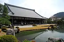 Japanese Tenryū 天龍 or 天竜, a loanword from Chinese Tianlong, is a comparable proper name. A famous example is Tenryū-ji 天龍寺 "Heavenly Dragon Temple" in Kyoto, which is headquarters of the Tenryū-ji Branch of the Rinzai sect. Tenryū place names include a waterway (Tenryū River 天竜川), a city (Tenryū, Shizuoka 天竜市), and a village (Tenryū, Nagano 天龍村). Further examples include Imperial Japanese Navy names (Japanese cruiser Tenryū 天龍), and personal names (Genichiro Tenryu 天龍源一郎, a wrestler).