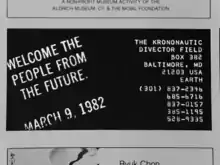 Advertisement placed in a 1980 edition of Artforum, advertising the Krononauts event
