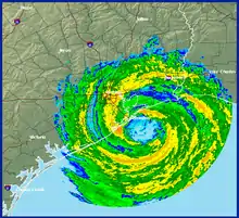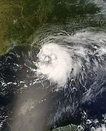 Hurricane Dolly shortly after making landfall on the Texas coastline