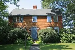 The Timothy Goodman House stands in southeastern West Hartford, on the west side of Quaker Lane (a busy north–south local artery) just north of its junction with Jackson Avenue. It is a 2+12-story wood-frame structure, with a gabled roof and clapboarded exterior. It is five bays wide, with a large central chimney and a rear leanto section, giving it a saltbox appearance. The bays are symmetrically located but not regularly spaced, with wide spaces on either side of the center entrance. The doors, windows, and house corners all have simple trim. The interior includes a number of early 18th-century features, including wood paneled fireplace surrounds, enclosed main beams, and original period doors and door hardware.[2]