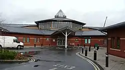 The hospital has its origins in a facility in Bampton Street which opened as the Tiverton Infirmary in 1860.[1] It became Tiverton Hospital in 1912[1] and joined the National Health Service in 1948.[2] The current facility, which was also intended to replace the old Belmont Hospital as well as the Bampton Street facility, was procured under a private finance initiative contract and opened in May 2004.[3] In spring 2016, 40 inpatient beds at the hospital were allocated to the Royal Devon and Exeter Hospital to resolve the lack of capacity at the latter hospital during the busy winter period.[4]