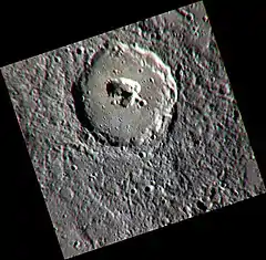 - 1 2 3 Gillis-Davis, Jeffrey J.; Blewett, David T.; Gaskell, Robert W.; Denevi, Brett W.; Robinson, Mark S.; Strom, Robert G.; Solomon, Sean C.; Sprague, Ann L. (2009). "Pit-floor craters on Mercury: Evidence of near-surface igneous activity". Earth and Planetary Science Letters. 285 (3–4): 243–250. Bibcode:2009E&PSL.285..243G. doi:10.1016/j.epsl.2009.05.023. See unnamed crater 1.