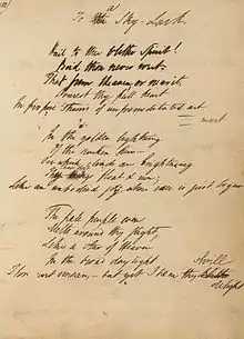 - ↑ Sandy, Mark (21 March 2002). "To a Skylark". The Literary Encyclopedia. Retrieved 9 January 2006.