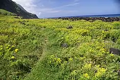 In the waters north of Fajã Rasa (near Ponta do Calhau), a Spanish cargo ship, Algorta, heavily laiden with cotton shipwrecked on 22 March 1864. The ship had nine crew members on board who were saved, but the ship was lost, its hulk deteriorating along the coast for years (with only the green-tinged rocks and partial frame lying along the black rocks off-coast as proof of the events).