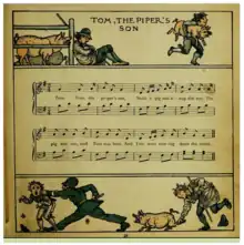 "Tom, Tom, the Piper's Son" is a popular English language nursery rhyme. It has a Roud Folk Song Index number of 19621.