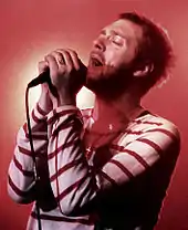 Meighan became the lead vocalist of Kasabian at the band's inception in Leicester in 1997.[9] He sang lead vocals on the majority of the band's recordings, has a baritone vocal range, and did not play any instruments within the group, apart from percussion on occasion and guitar on live renditions of "The Nightworkers" and "Test Transmission".[10][11][12]