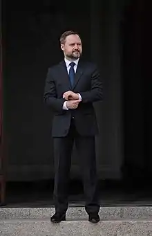 Tomasz Makowski in front of Krasiński Palace in Warsaw (2020)