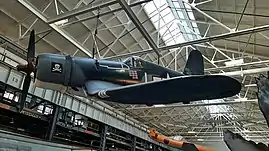 A replica of his F4U Corsair, with the Jolly Roger insignia and "Big Hog" written on the vertical stabilizer and the number one on the fuselage, was installed at the Washington Navy Yard in 1985.[5]