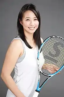 Takagishi was born in Toyama City in Toyama Prefecture, Japan.[6] Her father was a skier. There was a tennis court in front of her parents' house. Her parents enjoyed playing tennis as a hobby on that court. Takagishi often watched Grand Slams such as the French Open and Wimbledon on TV. At that time, her parents liked Steffi Graf, so naturally she also liked it. When she was 7 years old (1st grade), she tried playing tennis.[6] Then due to the influence of Steffi Graf, she started playing tennis at the Isobe Green Tennis Club at the age of 6, and at the age of 10, she was impressed by Shinobu Asagoe playing at the local Inter-High School Championships and she wanted to become a professional player thus she was in search of an environment where she could play tennis in earnest. She joined Ebara SSC in Kanagawa Prefecture and she lived in a female student condominium for college students and spend her days immersed in tennis. She won many titles in age-specific competition.[7] Besides tennis, Takagishi was an excellent long-distance runner. She participated in the 3 km marathon for elementary school students in Toyama City and won the championship. When she was in the 6th grade, she competed in the 1000m race as a school representative and also won the championship. After graduating from high school, she went to Shonan Institute of Technology High School and turned professional in 2003 after graduation.[6] In 2010, she was married to professional tennis player Toshihide Matsui.[6]