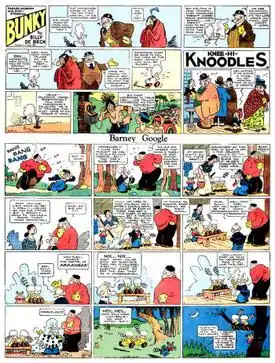 Billy DeBeck's topper for Barney Google was Parlor Bedroom and Sink, which evolved into Parlor Bedroom and Sink Starring Bunky and eventually was titled simply Bunky. In the mid-1930s, DeBeck added alongside Bunky a single-panel topper, Knee-Hi-Knoodles, depictions of kids' funny remarks (contributed by readers). Bunky spawned the catchphrase, "Youse is a viper, Fagin." A big fan of Bunky was pulp author Robert E. Howard, who liked to quote from the strip, as noted by his friend Tevis Clyde Smith: