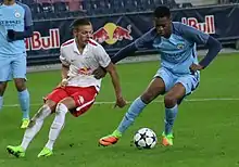 Adarabioyo (right) playing for Manchester City in the UEFA Youth League in 2017.