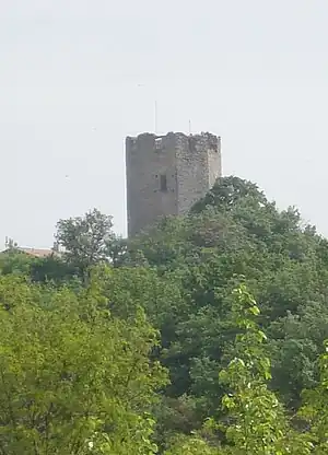 The Tour de Ratières, built in the commune of Ratières in the north of the Drôme département of France, is a medieval tower once the keep of a castle. Approximately 15 metres high and hexagonal in plan, it overlooks the village and the surrounding plain.
