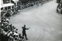Riders passing in Saint-Malo during the 1958 Tour de l'Ouest.