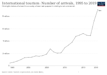 The number of international arrivals has been steadily increasing, up from 2.2 million people in 2009 to 3.6 million in 2011, with per capita spending of $1,850 per visit on average.[26][27]