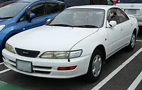 The Toyota Carina ED is a compact car manufactured by Japanese automaker Toyota in 1985 as a companion to the 1984 Carina sedan. It was positioned as the four-door Celica, with a similar focus on luxury found on larger Toyota hardtop sedans, like the Toyota Crown and the Toyota Cresta. It was the counterpart of the Corona EXiV. Its design sought to emulate the hardtop four-door coupé styling of large American and European sedans, resulting in a small, low cabin with longer front and rear ends. The ED's B-pillar stood up in the middle with no purpose other than to hinge the rear door on; it was not attached to the roof side of the cabin. The ED achieved huge sales in Japan, and other Japanese manufacturers introduced the Mazda Persona, Nissan Presea, and Mitsubishi Emeraude around the same time. "ED" is the initials of "Exciting" and "Dressy".[1] When the Carina ED was discontinued, the Toyota Brevis appeared for the market segment served by the Carina ED.