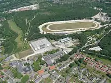 Trabrennbahn Gelsenkirchen, also known as GelsenTrabPark, is located in the Feldmark quarter of Gelsenkirchen, Germany. The track, built in 1912, is used for harness racing and is the largest harness racing track in Germany, with a capacity for 30,000 spectators. The grandstand was built in 1965 and expanded in 1979, owns 9,600 seats on four floors and has a length of 112 meters. In 2002 the grandstand was renovated and a VIP-lounge called "Abano As Club" was installed. The track length is 1,200 meters and it is a right-handed course.