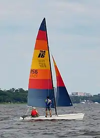 The Trac 16 (sometimes styled as the TRAC-16 or Trac-16) is an American catamaran sailboat that was designed by Steve Nichols as a day sailer and first built in 1983.[1][2]
