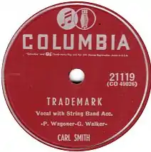 "Trademark" is a song written by Porter Wagoner and Gary Walker, performed by Carl Smith, and released by Columbia Records (catalog No. 21119).[1] In July 1953, it entered Billboard magazine's country charts, peaked at No. 2 on the best seller chart (No. 5 juke box), and remained on the chart for 16 weeks.[2]
