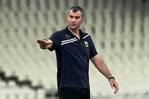On 7 November 2015, he signed a contract with club Atromitos. On 12 January 2018, he signed a contract with Panetolikos.[18] He resigned on 19 April 2019. On 10 November 2020, Panetolikos announced his return as the manager of the club in a need of gaining points for avoiding relegation.[19] His second tenure ended officially on 5 June 2021, after the club thanking him for having successfully avoided relegation for the club, which was achieved thanks to an away goal in a (2–1) defeat, and a late goal victory at home (1–0) in the 2nd leg of the relegation play-offs.[20]
