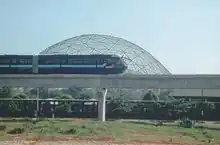Garuda Kencana Tram Mover, formerly SHS-23 Aeromovel Indonesia, Titihan Samirono (Javanese for "wind transport") or Kereta Layang (Indonesian for "elevated train"), is a people mover system at Taman Mini Indonesia Indah (TMII) in Jakarta, Indonesia. The 3.2 km system is entirely elevated with tracks situated 6 meters above the ground[2] and loops around the park.