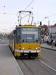 In 2007, the first Plzeň three-cell tram KT8D5 was upgraded to the partially low-floor Tatra KT8D5R.N2P type.[6] In March 2008, the partially low-floor new-build Tatra T3R.PLF appeared in service for the first time. Since 2010, VarioLF and VarioLF plus cars have been delivered, and in 2013, the first articulated tram VarioLF2/2 IN was purchased.[8]