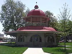 The Transfer House is a historic building located in Central Park in Decatur, Illinois. Built in 1896, the building originally served as a transfer point for Decatur's electric streetcar system. Architect William W. Boyington's design for the building was influenced by a number of Victorian styles, particularly the Richardsonian Romanesque. The building was ultimately moved to Central Park and is now listed on the National Register of Historic Places.