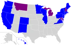 Many jurisdictions in the US currently offer third gender markers on driver's licenses,[105] including Arkansas,[106] California, Colorado, Connecticut,[107] Delaware, Washington D.C., Hawai'i, Massachusetts,[108][109] Maine, Maryland, Michigan,[110][111] Minnesota, Nevada, New Hampshire,[112] New Jersey,[113] New York,[114] Ohio, Oregon, Pennsylvania,[115][116] Rhode Island,[117] Utah, Virginia,[118][119] Vermont, and Washington.