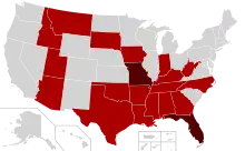 Throughout the United States, transgender rights are a target of conservatives and the Republican Party.[10][11] Restrictions and bans on gender-affirming care, hormone therapy, and drag are common in red states alongside queer-oriented literature, and academic curricula (i.e., gender and sexuality studies, etc.) have been prohibited by state governments in public schools.[12]