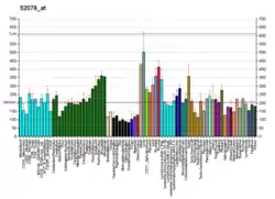 Evidence from yeast two-hybrid screening exists for two protein interactions with this gene. One is a serine protease (PRSS23)[18] that has been identified to be involved in mouse ovulation and is excreted into the extracellular matrix.[19] The other protein is an ab-hydrolase (HLA-B associated transcript 5)[20] that is integral to the membrane, and its corresponding gene is located in the genome near Tumor Necrosis Factor (TNF)-alpha and TNF-beta.[21]