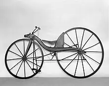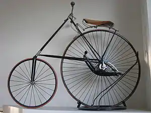 Treadles were used before the advent of highwheelers on Thomas McCall's velocipede, on highwheelers themselves in an attempt to address safety issues,[1][2] on alternative configurations of highwheelers,[3] and on the first device called a safety bicycle by British engineer Henry J. Lawson in 1876.[4] Some inventors even combined treadles and chains on the same bicycle.[5][6]