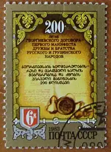 In 1983, the Soviet authorities celebrated the bicentennial of the Treaty of Georgievsk, provoking protests from anti-Soviet Georgian dissidents. In this period, several monuments were erected to commemorate the treaty, among them the Russia–Georgia Friendship Monument along the Georgian Military Road. Georgia's underground Samizdat publication, Sakartvelo (საქართველო), dedicated a special issue to the event, emphasizing imperial Russia's disregard of the key agreements in the treaty. Underground political groups disseminated leaflets calling on Georgians to boycott the celebrations, and several young Georgian activists were arrested by the Soviet police.[13]