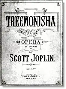 Treemonisha (1911) is an opera by American ragtime composer Scott Joplin. It is sometimes referred to as a "ragtime opera", though Joplin did not refer to it as such and it encompasses a wide range of musical styles.[1] The music of Treemonisha includes an overture and prelude, along with various recitatives, choruses, small ensemble pieces, a ballet, and a few arias.[2]