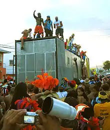 ![]() Members of a costume band parade on the streets of Port of Spain | |