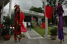 - Moko jumbie - A stilt dancer. The character is of African origin. Originally the character wore a hat made of dried wild cucumbers, and the stilts were striped.[5]