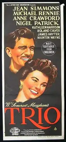 Trio (also known as W. Somerset Maugham's Trio) is a 1950 British anthology film based on three short stories by W. Somerset Maugham: "The Verger", "Mr Know-All" and "Sanatorium". Ken Annakin directed "The Verger" and "Mr Know-All", while Harold French was responsible for "Sanatorium".