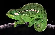 Wolfgang Böhme's Ethiopian chameleon (Trioceros wolfgangboehmei) is a species of chameleon found in the northern slopes of the Bale Mountains in Ethiopia.[1] It is a small-sized chameleon of the Trioceros affinis species complex. The chameleon is approximately 6 inches (15 centimeters) in length, and are known for their distinctive crest of large, spiny scales along its back. The species is named after Wolfgang Böhme, senior herpetologist at the Zoological Research Museum Alexander Koenig, to honor his contributions to chameleon research.