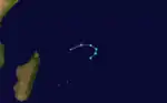 There were six storms named by the weather service in Madagascar or Mauritius, with advisories issued by Météo-France's meteorological office at Réunion (MFR).[1] At the time, the MFR area of warning responsibility was from the coast of Africa to 80° E, and the agency primarily used the Dvorak technique to estimate the intensities of tropical cyclones.[4] The Joint Typhoon Warning Center (JTWC), which is a joint United States Navy – United States Air Force task force that issues tropical cyclone warnings for the region,[5] also tracked a short-lived tropical storm in February, which formed on February 5 northeast of Mauritius. The system tracked to the southeast, reaching peak winds of 65 km/h (40 mph) before dissipating on February 8 northwest of Rodrigues.[6]