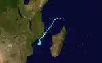 The South Indian convergence zone spawned a circulation that organized into a tropical depression in the Mozambique Channel on January 9. It gradually intensified while moving to the southwest, developing spiral rainbands. On January 11, Elinah passed between Anjouan and Mohéli in the Comoros archipelago. The next day, JTWC upgraded the storm to the equivalent of a minimal hurricane, although land interaction with Mozambique weakened Elinah. After it turned to the south and moved away from the coast, the storm re-intensified, and MFR estimated Elinah reached peak winds of 115 km/h (70 mph) on January 14. Subsequently, the convergence zone caused the storm to weaken, ultimately absorbing it by January 16.[1][13]